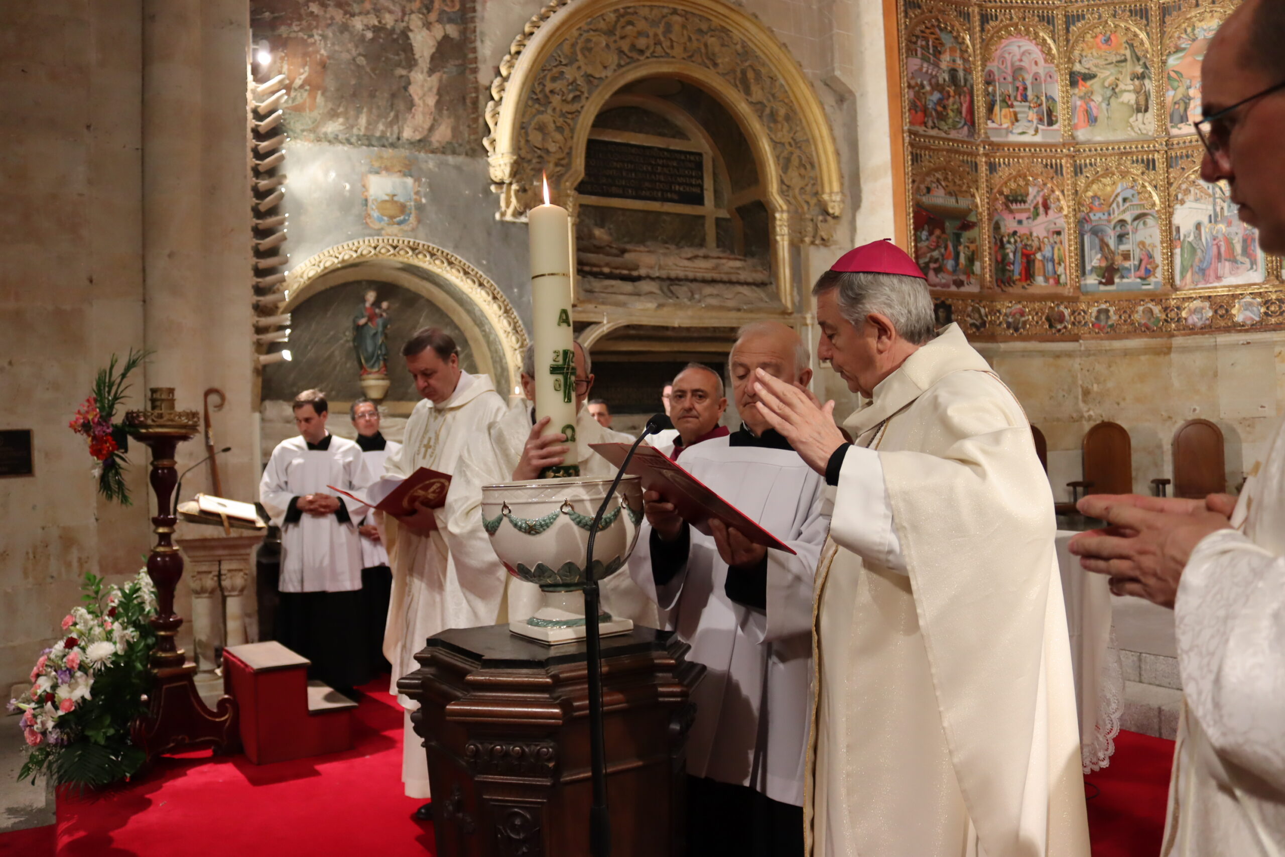 El pasado 4 de abril, en la Vigilia Pascual celebrada en la catedral de Salamanca, Monseñor José Luis Retana administró el bautismo, la confirmación y la eucaristía a 4 universitarios salmantinos. Todos ellos habían solicitado ser bautizados después de un encuentro personal con Jesucristo y que transcurrió por distintos caminos. Culminaba así un período de preparación de dos años. Ha sido una alegría para toda la Pastoral Universitaria.