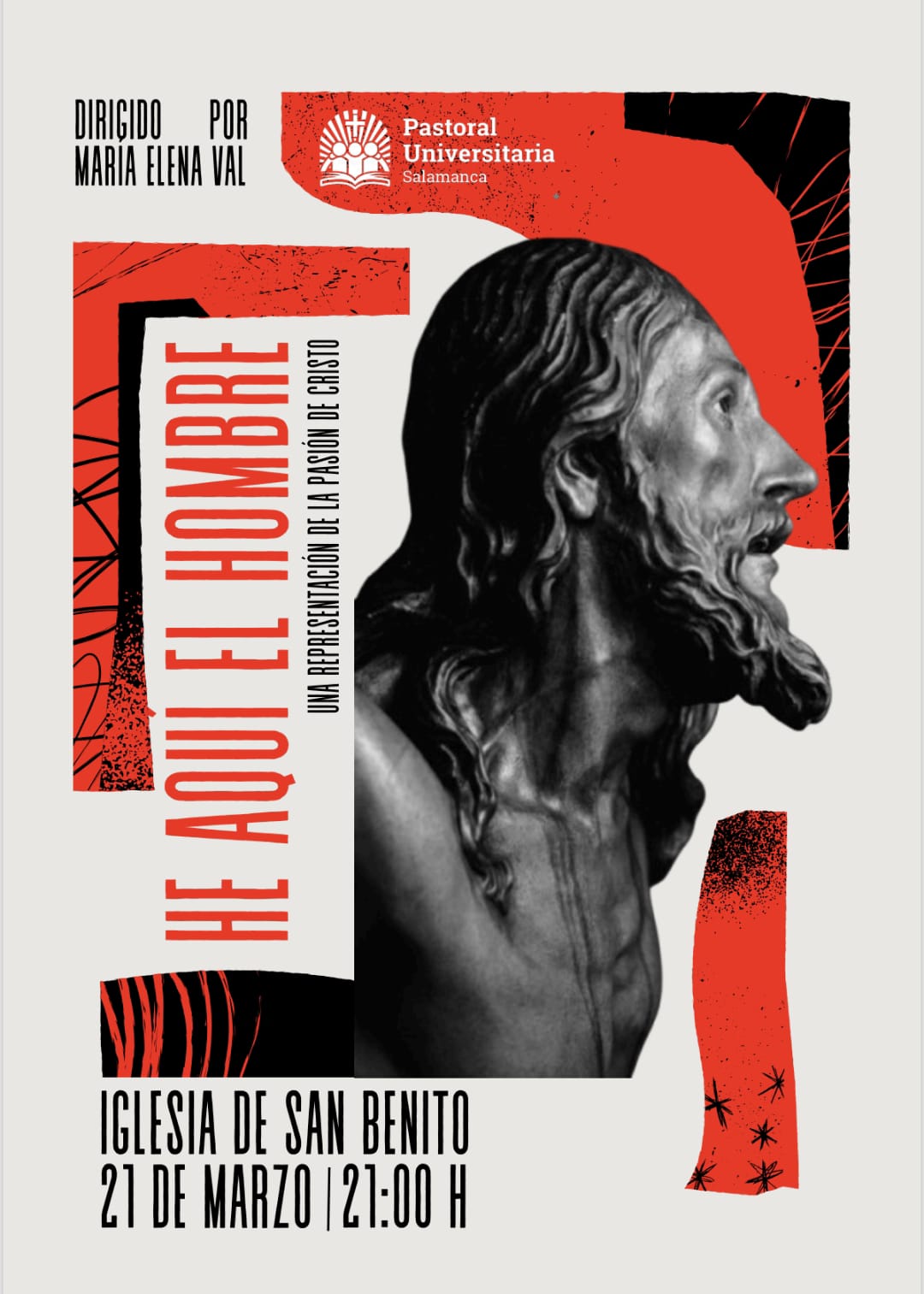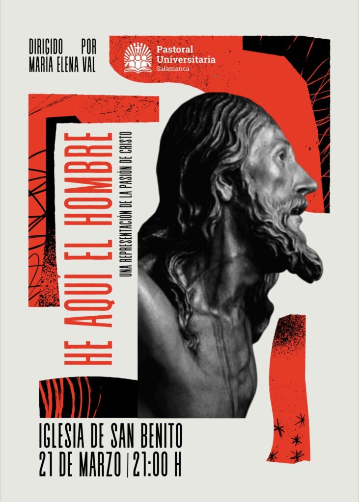 Por segundo año consecutivo Pastoral Universitaria de Salamanca ha ofrecido la representación de la pasión de Jesucristo. Tuvo lugar en la Iglesia de san Benito, el día 21 de marzo a las 21,00. Ante una iglesia llena de asistentes los jóvenes supieron transmitir la intensidad de la Pasión de Jesucristo